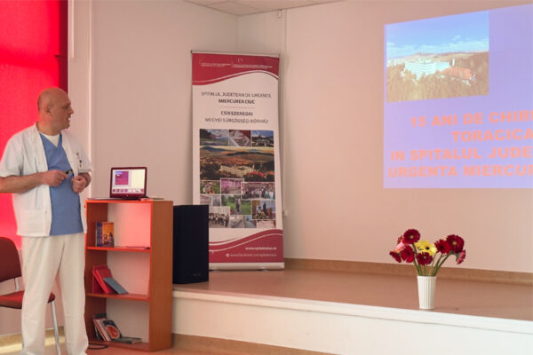 Spitalul Judeţean de Urgenţă (SJU) Miercurea-Ciuc a găzduit, joi, un simpozion special, organizat pentru a marca cea de-a 15-a aniversare a secţiei sale de Chirurgie Toracică. Evenimentul, desfăşurat în biblioteca Spitalului Judeţean, a reunit numeroşi specialişti care au asistat la o serie de prezentări cuprinzătoare, abordând atât aspecte ale chirurgiei toracice, cât şi perspective din specializările conexe esenţiale pentru această arie medicală.